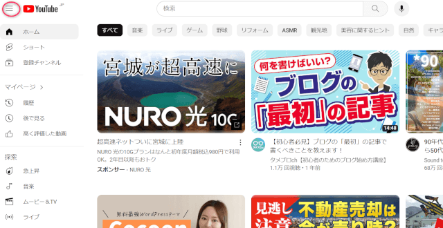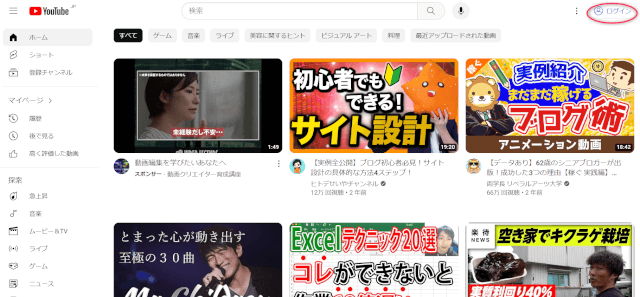 はじめにYouTubeを検索し開きます。右上にある『ログイン』をクリックします。